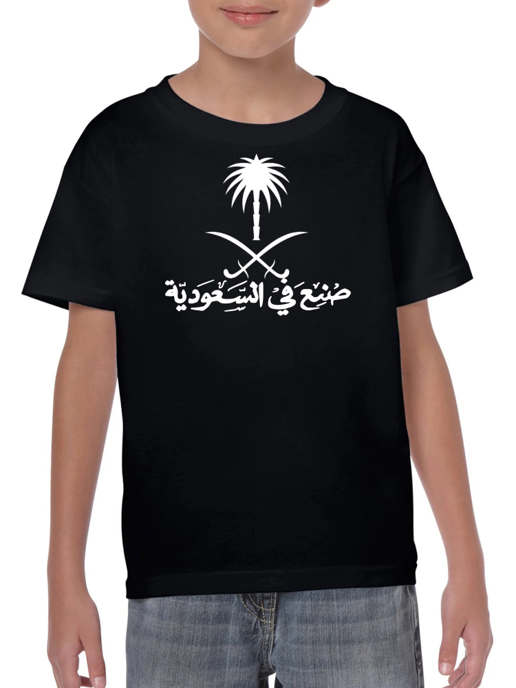 احصل على تيشيرت صنع في السعودية أطفال (أسود) الآن من tshirtyshop وتمتع بجودة عالية وتصميم يعبر عن هوية وطنية مميزة لطفلك.